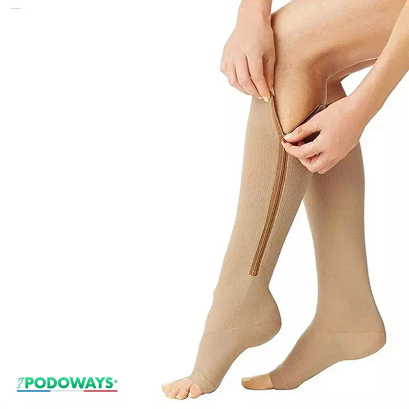 Nos chaussettes de compression longue avec fermeture éclair sont conçues pour offrir un soutien orthopédique personnalisé là où vous en avez le plus besoin.